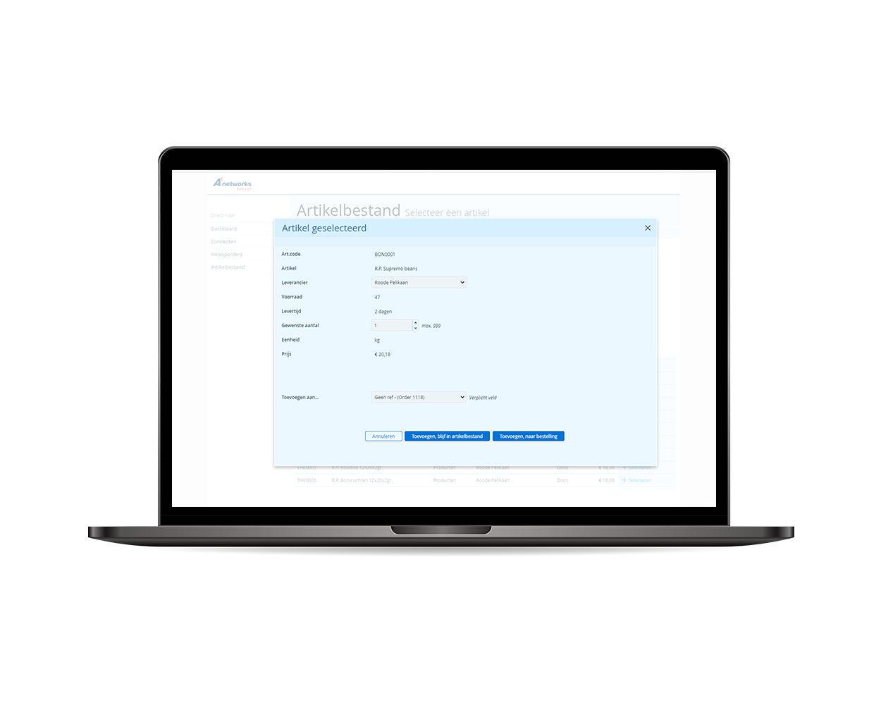 Makkelijk toegang tot het online platform en het plaatsen van bestellingen. Het platform zorgt zelf voor de afhandeling. Zo heb je een sneller en eenvoudig inkoopproces.